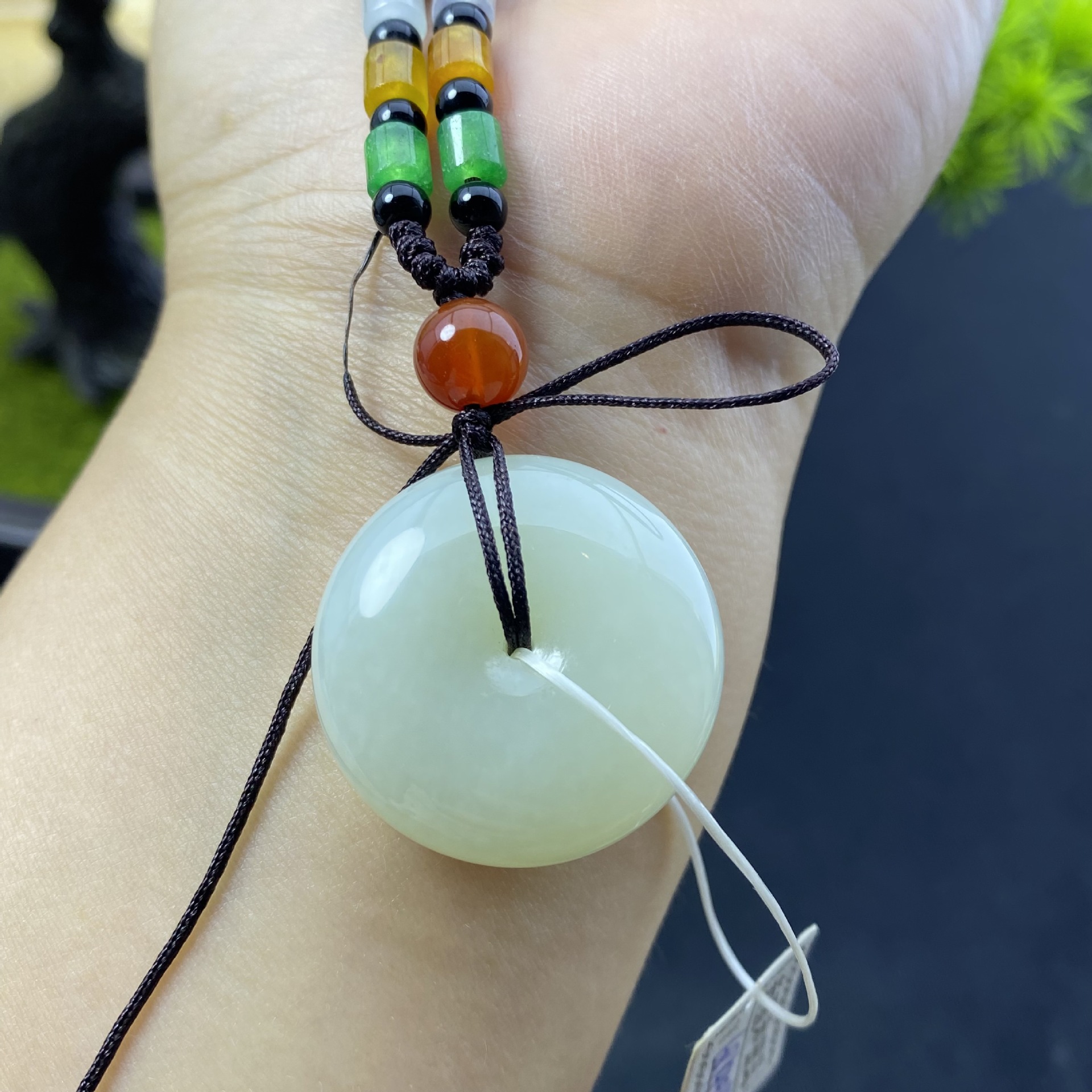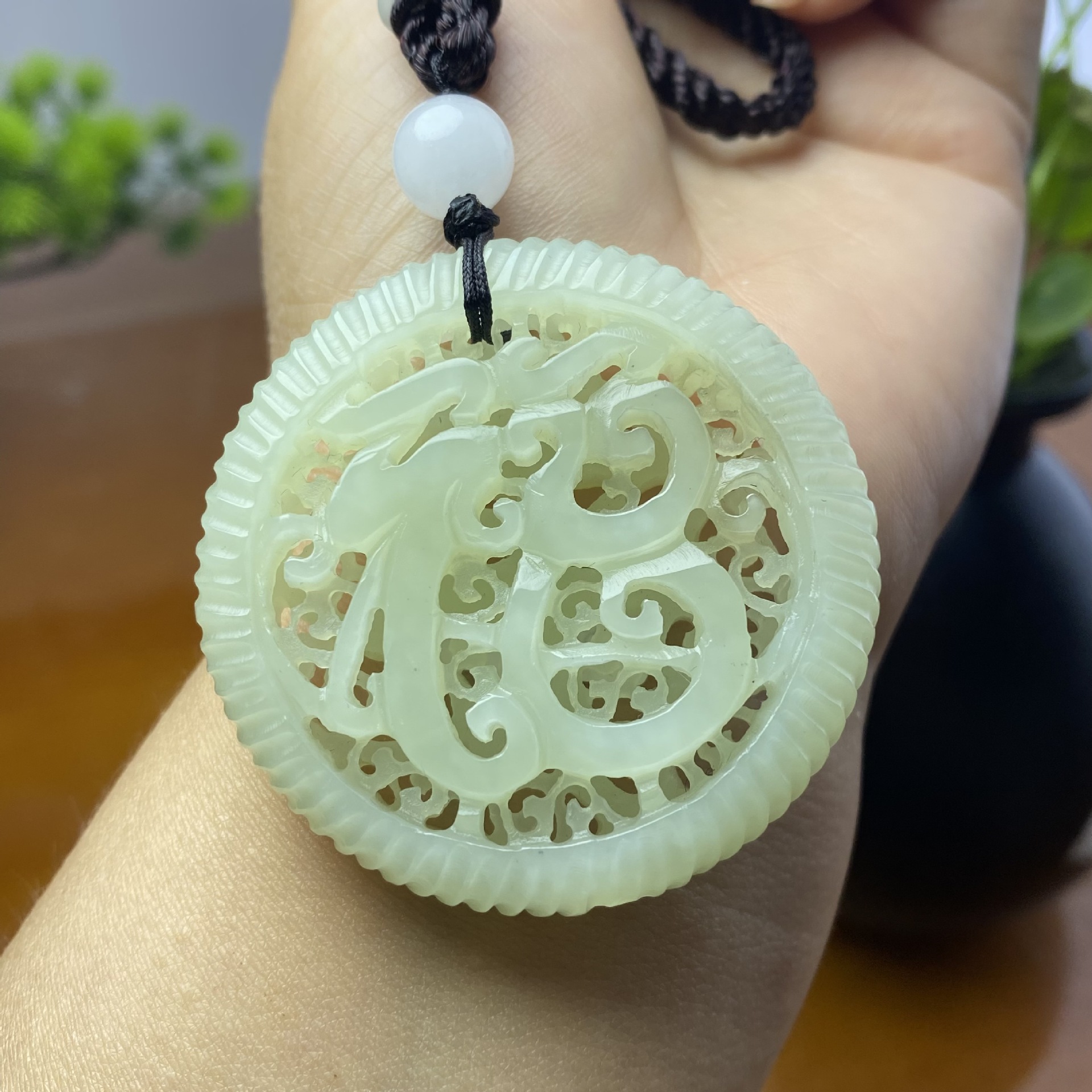 和田玉福寿円牌ペンダント青白玉透かし彫り福牌ペンダントタイヤブランド男女モデル車掛け