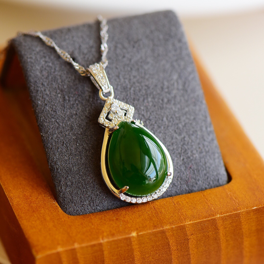 925銀は和田玉碧玉水滴ペンダント女性の新しいネックレスを飾っている