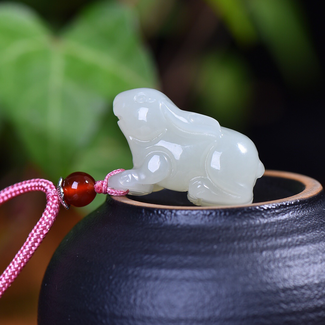和田玉生肖兎ペンダント新疆白玉ブランド動物ペンダント兎玉ネックレスペンダント