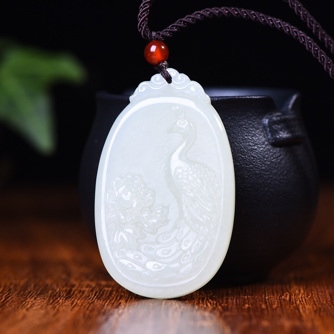 和田玉富貴花開孔雀ペンダント新疆白玉ブランドペンダント都植物ネックレスペンダント