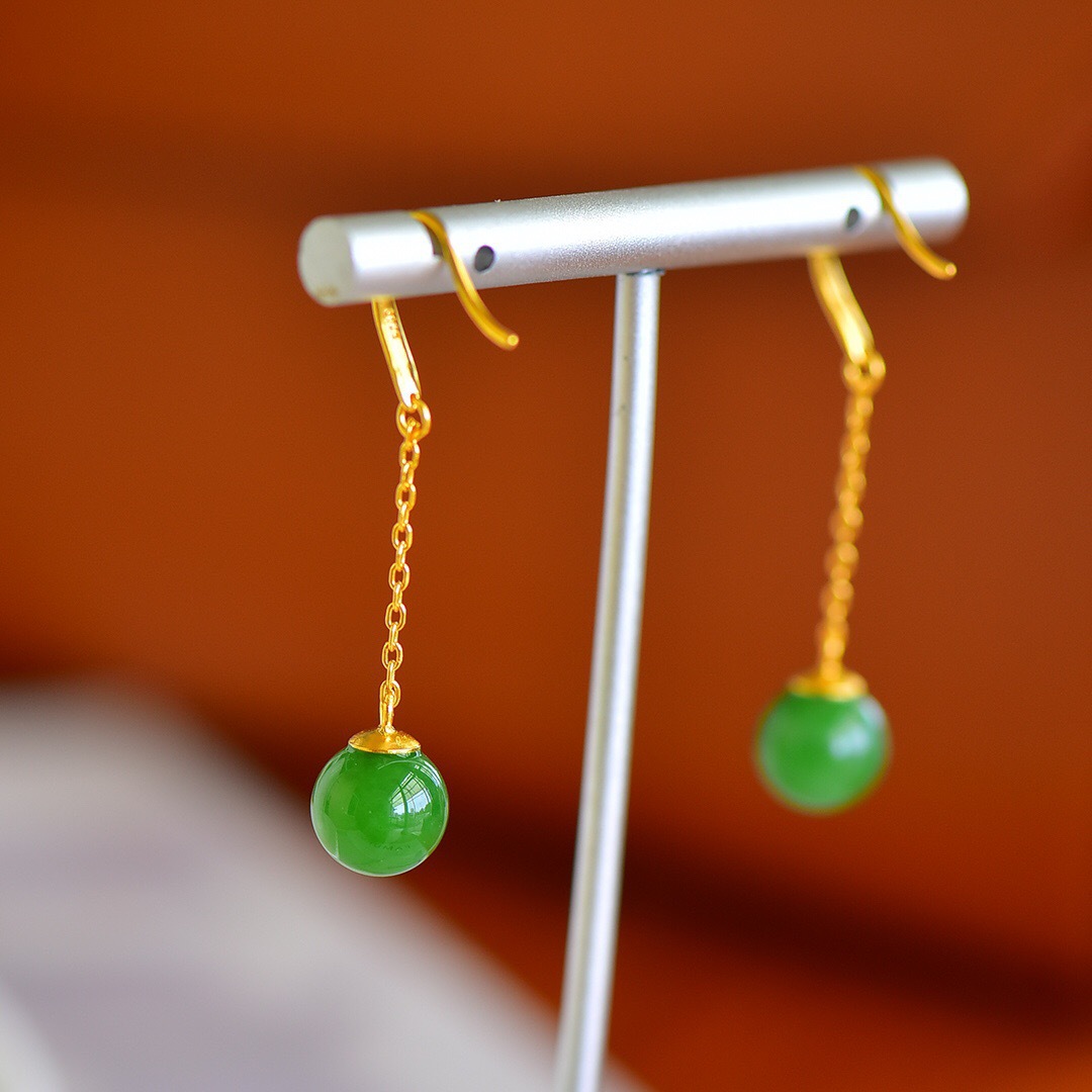 新疆と田玉のイヤリングの碧玉のファッション的な耳の線の女性の金は銀の玉の丸い玉のイヤリングを入れます。