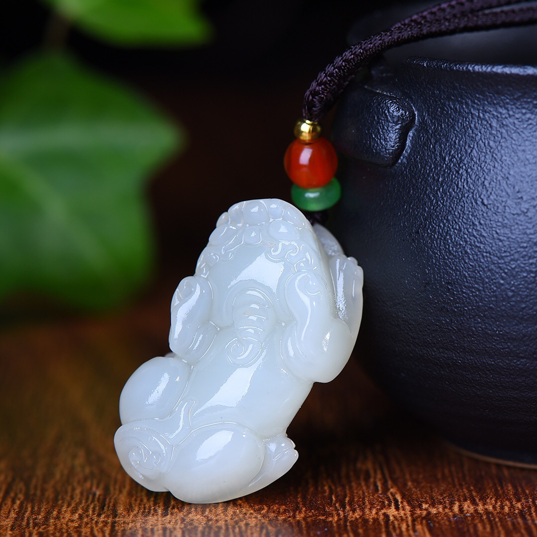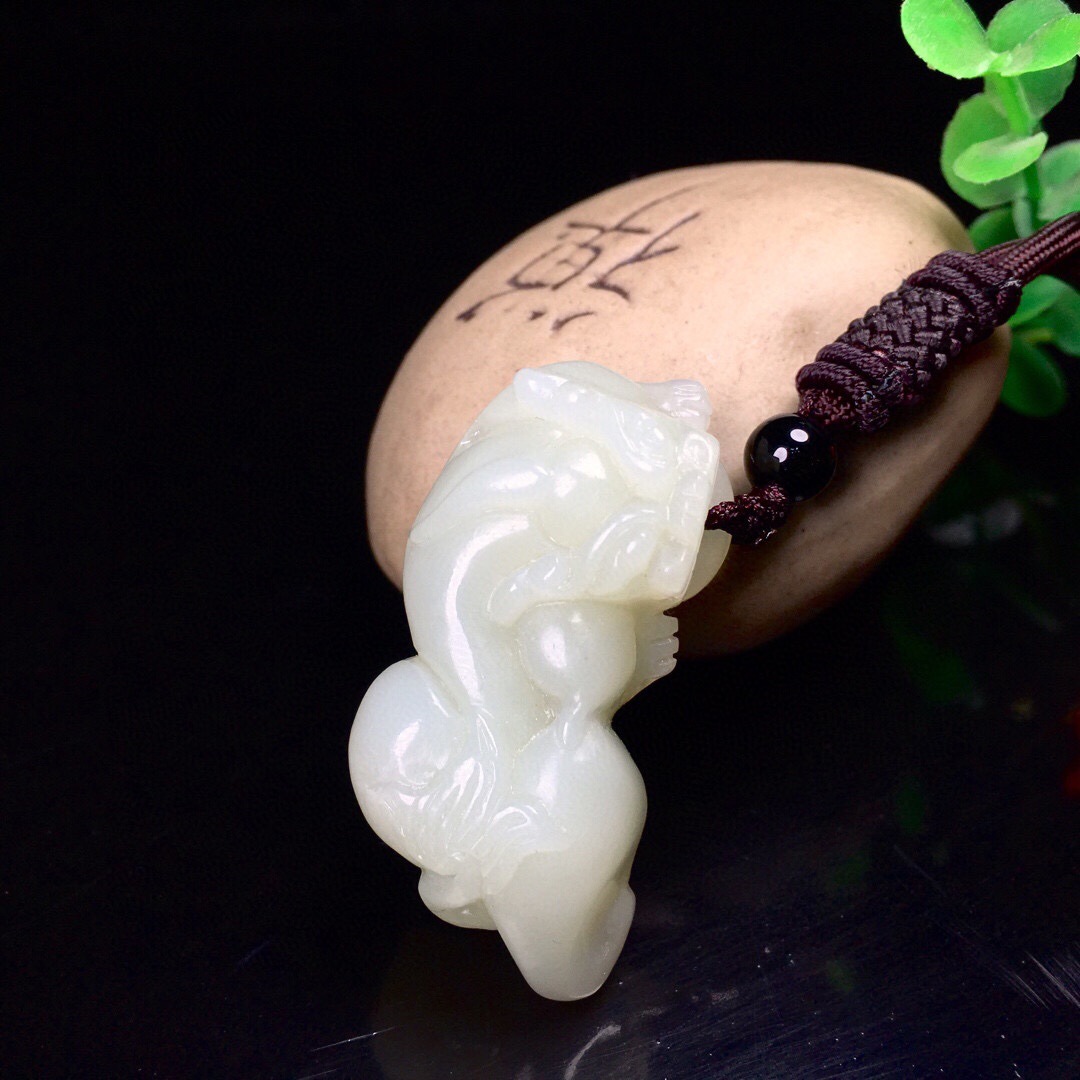 和田玉の立体のピシュピストのペンダントの男女のネックレスは新疆の白玉のブランドの皮休のペンダントにぶら下がっています。