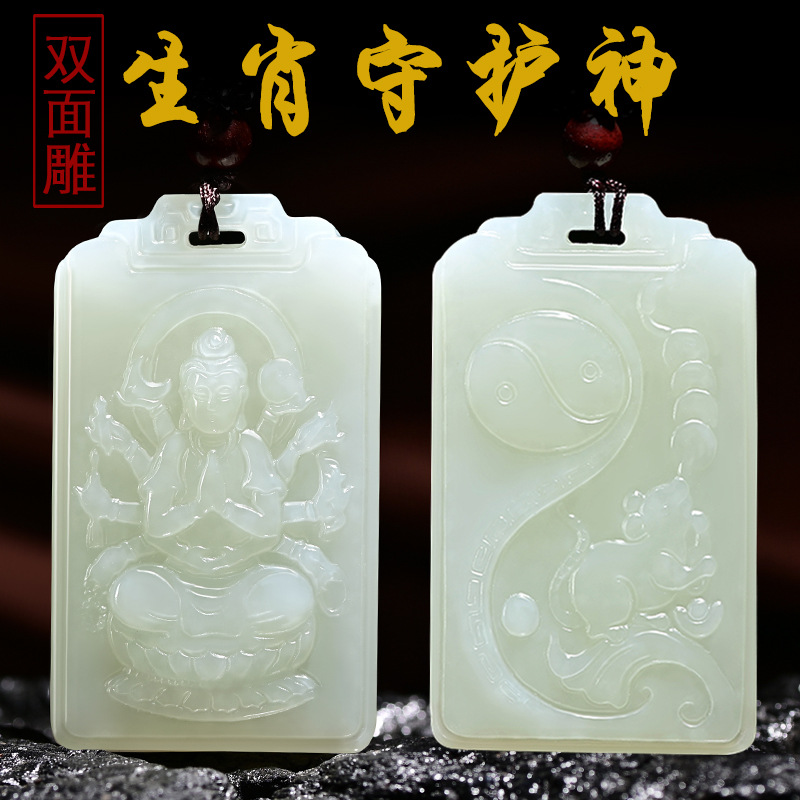和田玉生肖本命仏ペンダント属鼠牛虎兎龍蛇馬羊猿鶏犬豚千手観音守護神