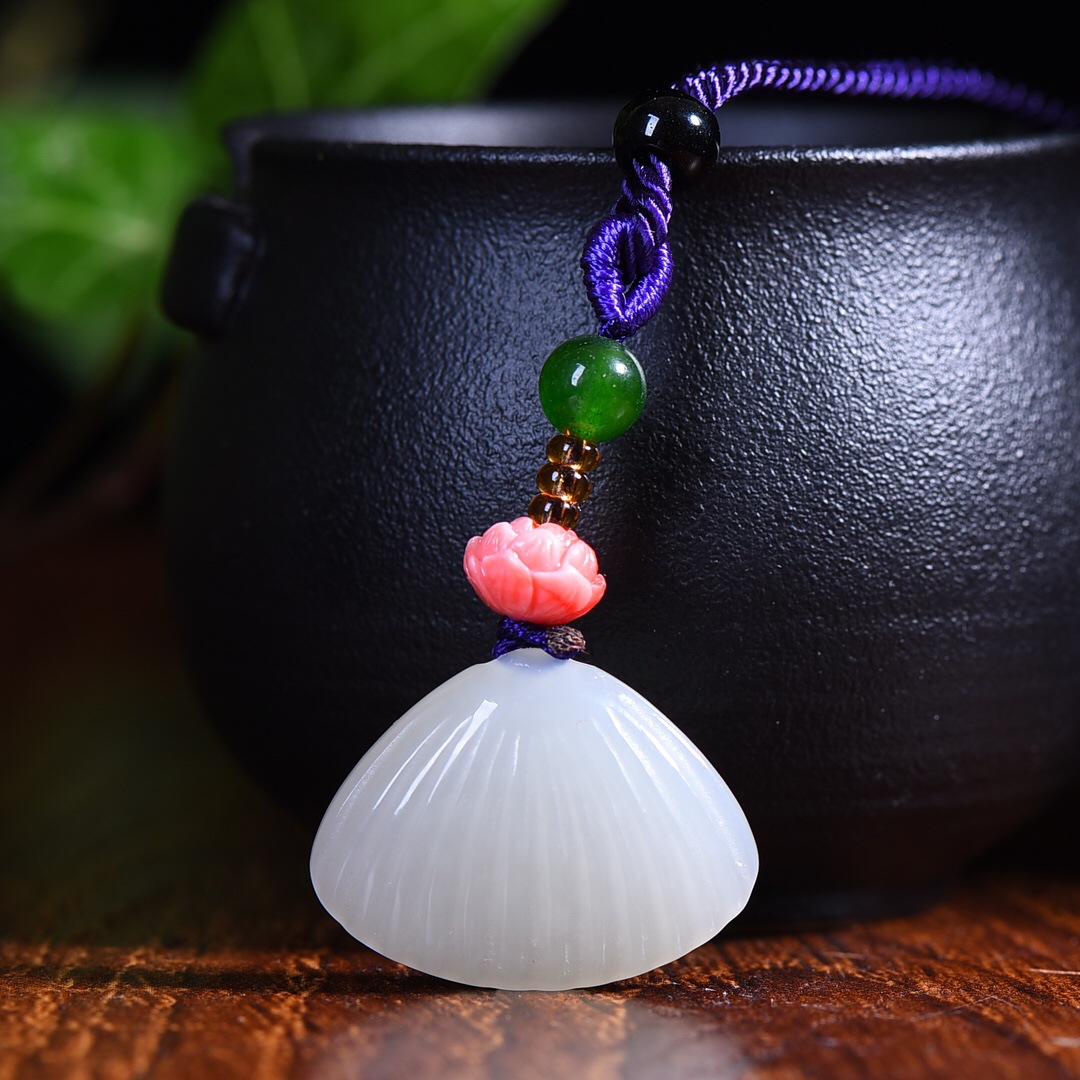和田玉の小さい貝殻の福貝は新疆の白玉のブランドにぶら下がって、男女の金の玉のネックレスのペンダントを掛けます。