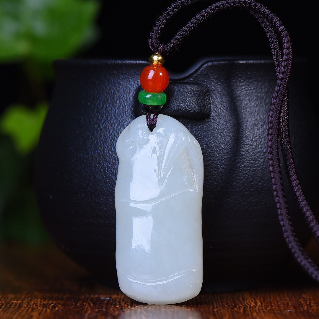 和田玉旗開得勝ペンダント新疆白玉ペンダント女性のチャイナドレスのネックレスペンダント
