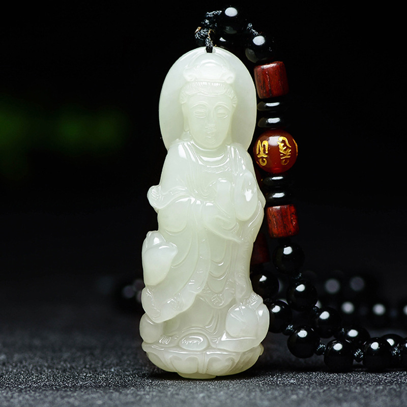 新疆和田玉観音ペンダントメンズ玉ネックレス観音菩薩玉佩白玉玉ペンダントアクセサリー