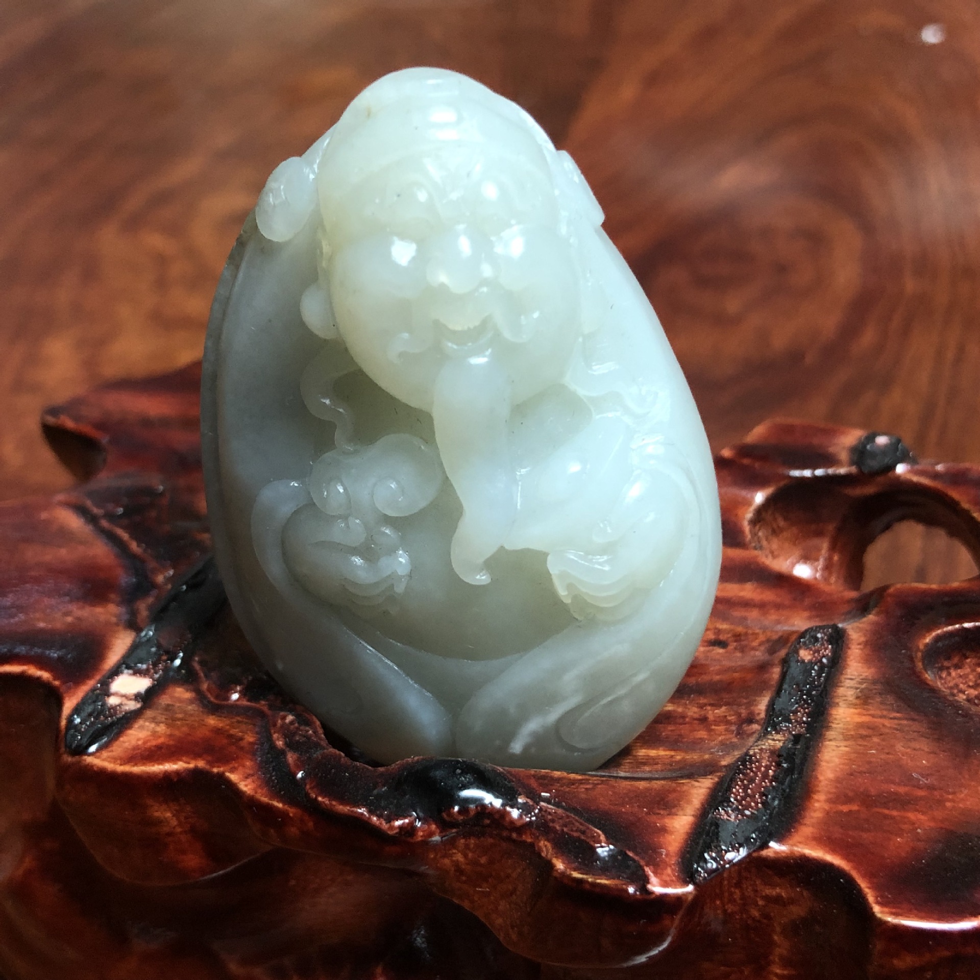 新疆と和田の種の財神玉のペンダント玉の財神の羊脂の白玉の財神のペンダントは贈り物を遊びます。