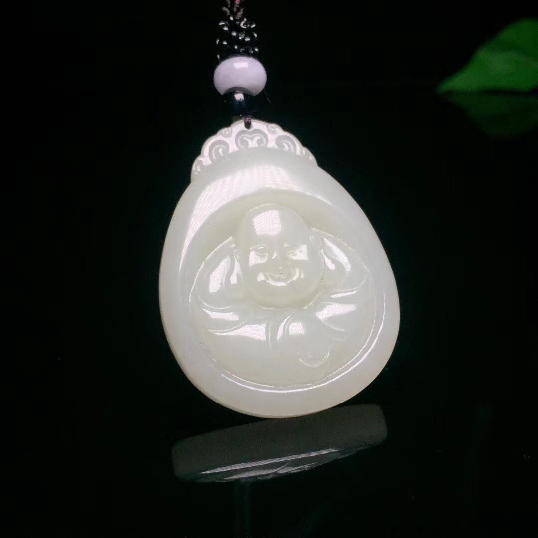 新商品の新疆と田玉の仏公のペンダントの種の青い白玉の心の中に仏のネックレスがあります。