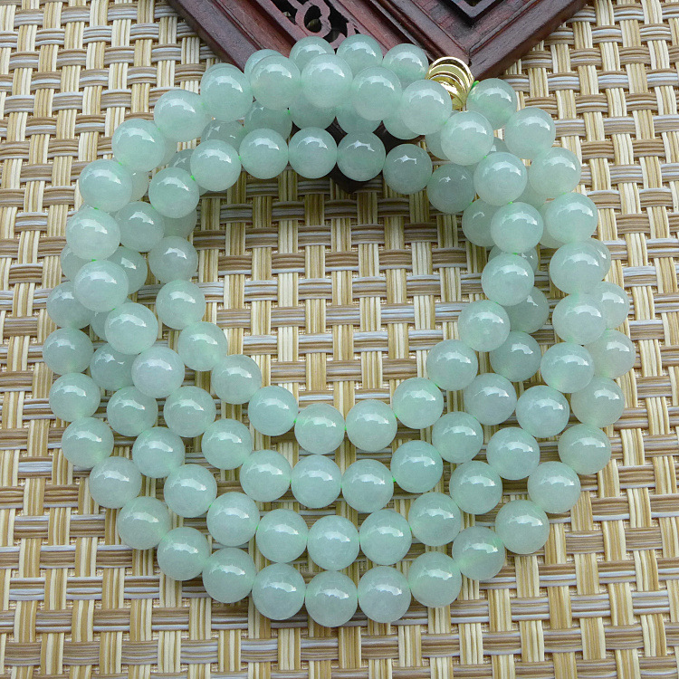 和田玉碧玉ネックレス氷透陽緑8mm円珠玉玉仏珠は母にプレゼントして証明書を持っている