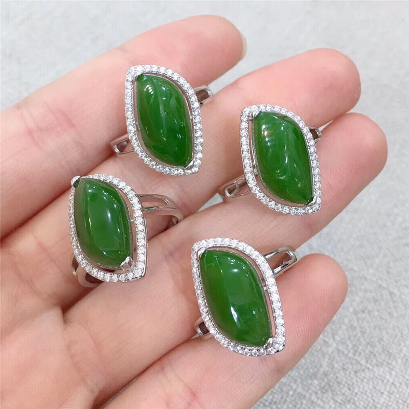 新疆和田碧玉男女の指輪の活口のダイヤモンドの柳の葉の玉はs 925銀を引いて簡単な装飾品を象眼します。