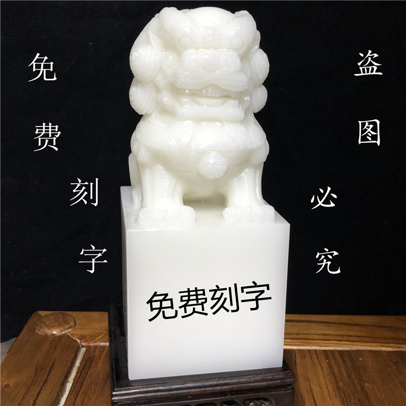 真玉汗玉印章獅子置物アフガニスタン白玉印章家庭装飾品個人玉印工芸