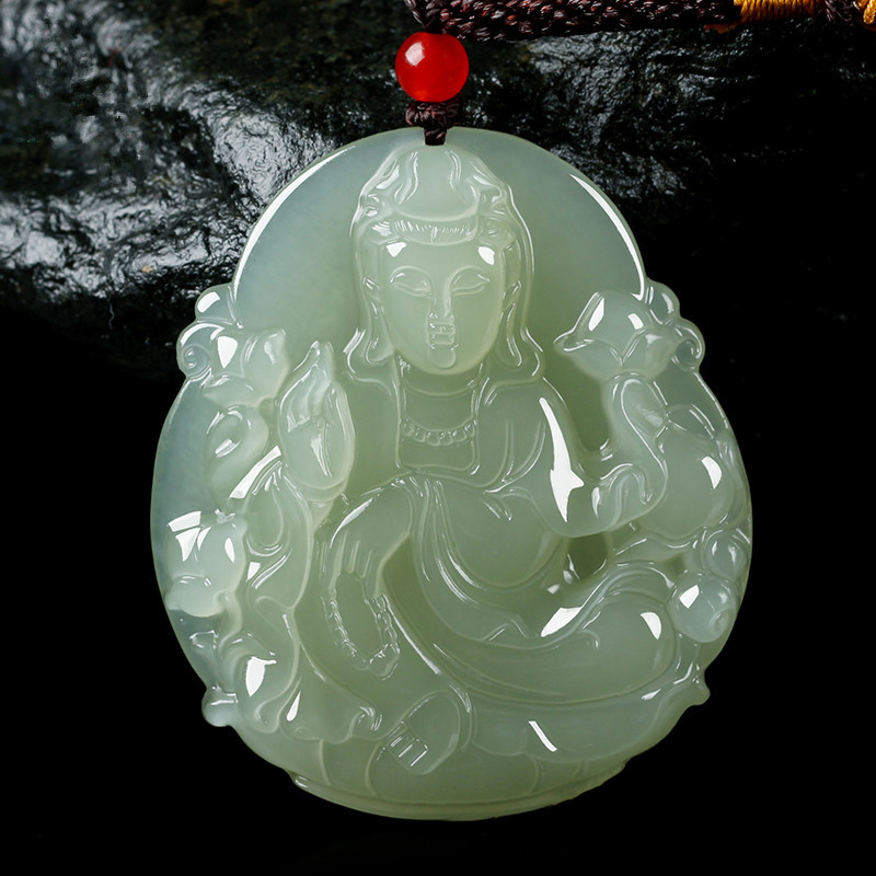 新作和田玉観音ペンダントメンズ玉ネックレス白玉観音菩薩玉ペンダントブランドジュエリー