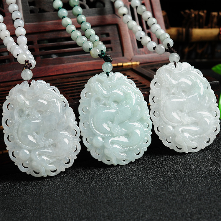 ミャンマー翡翠a商品玉龍ペンダントネックレス龍牌玉佩帯珠鎖男女金掛け縄卸売り玉ペンダント