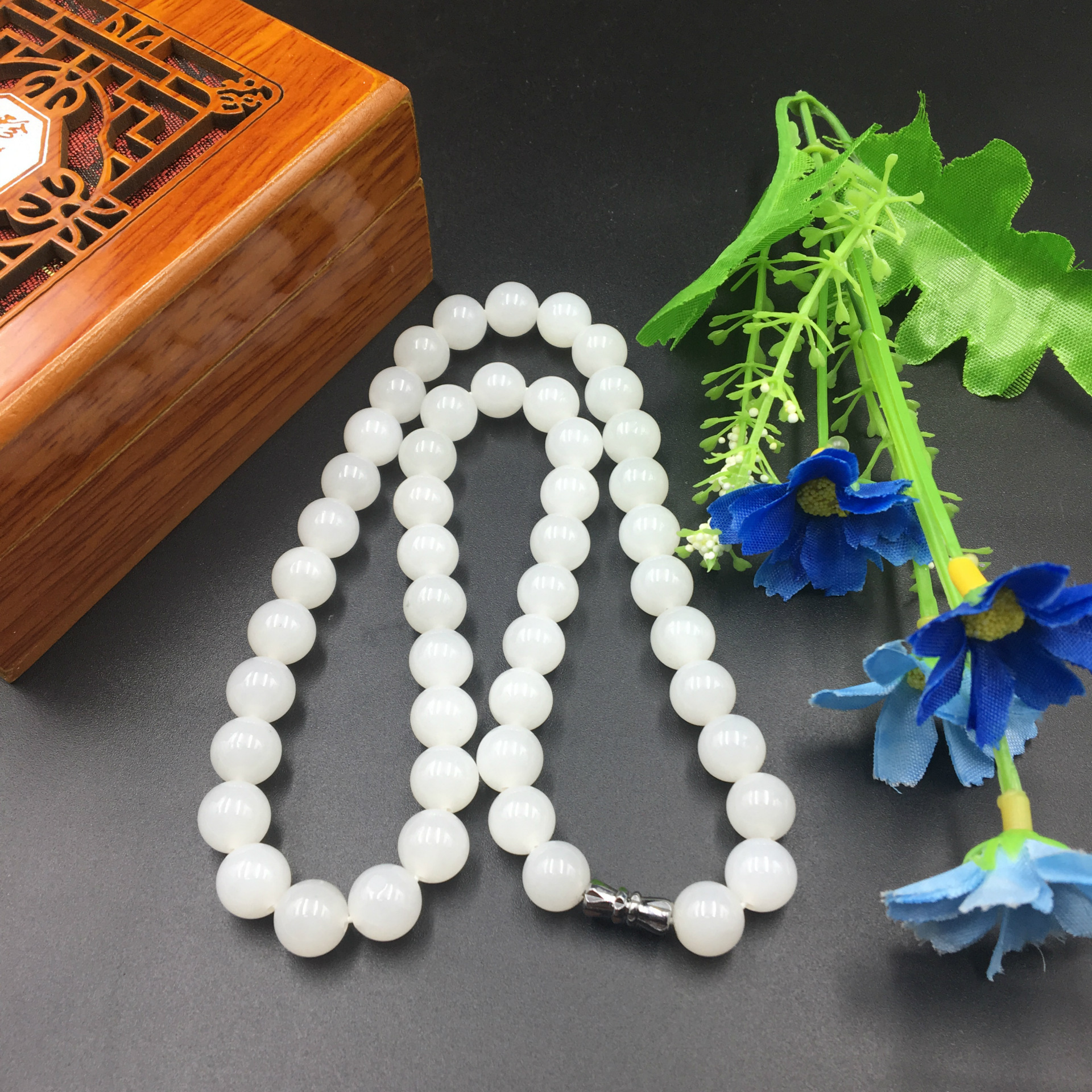 新疆和田白玉ネックレス羊脂玉玉玉母鎖油潤玉女金仏珠鎖卸売り
