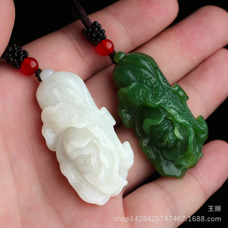 玉雕玉玉白菜ペンダント男女新疆と田玉白玉ペンダント卸売り碧玉百財カップル玉ペンダント