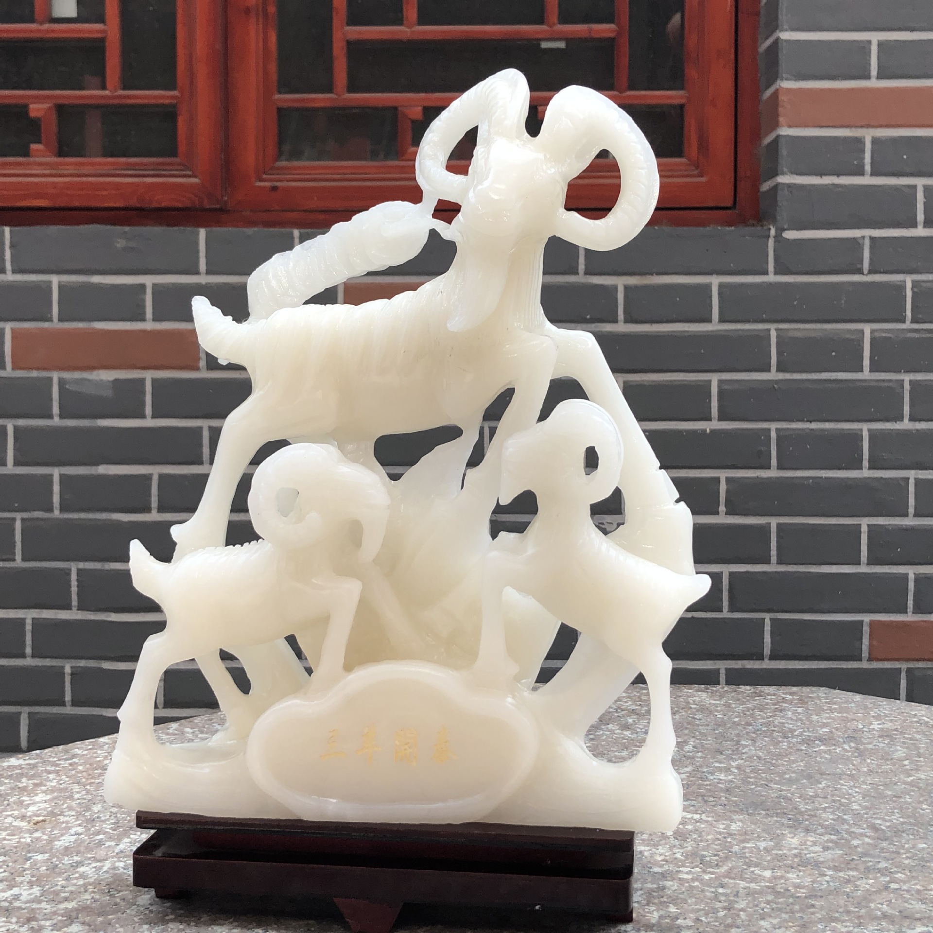 天然汗玉三羊開泰置物漢白玉生肖羊置物羊如意工芸品置物