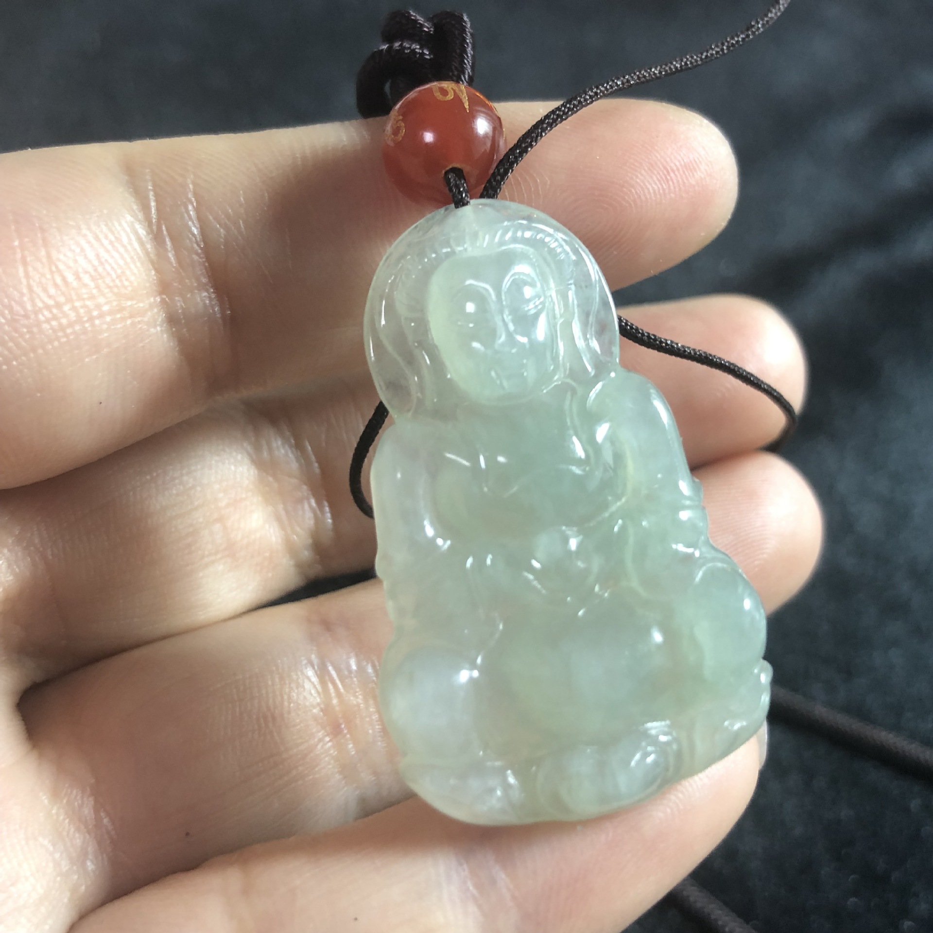 翡翠a品観音ペンダントペンダント玉ペンダントビルマ玉氷晴水観音菩萨玉ペンダント証明書付き