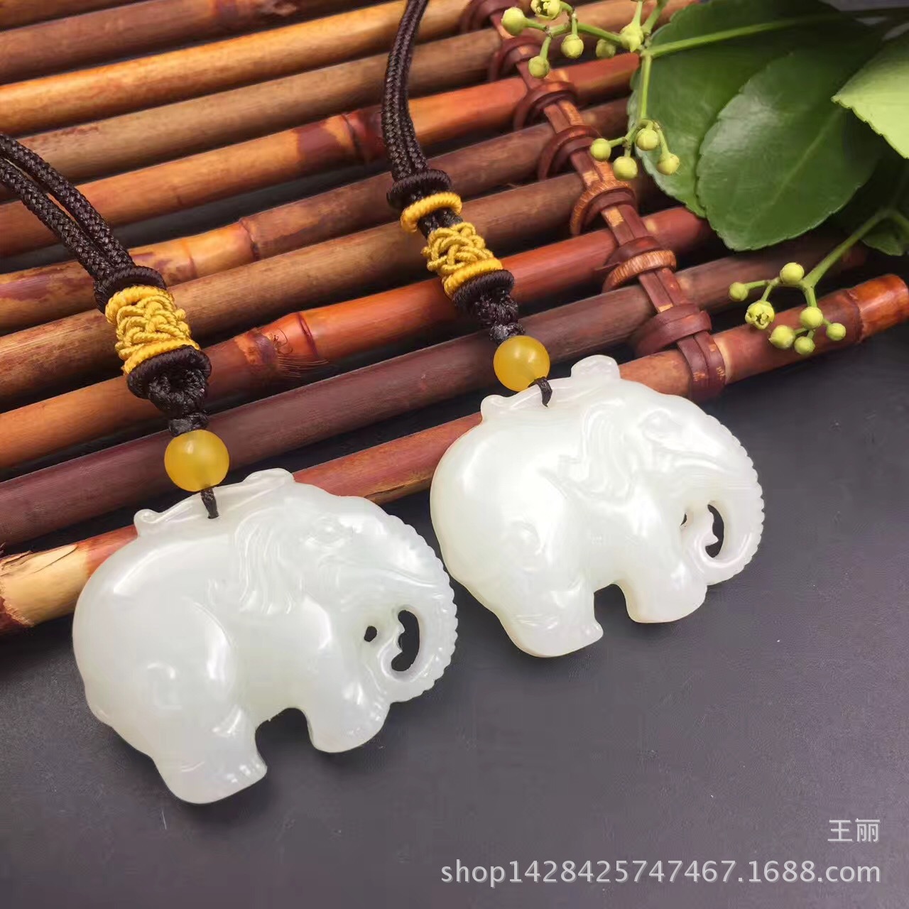 新疆和田玉走象成g力ペンダント吉祥象美しい和田青白玉象カップル玉ペンダント