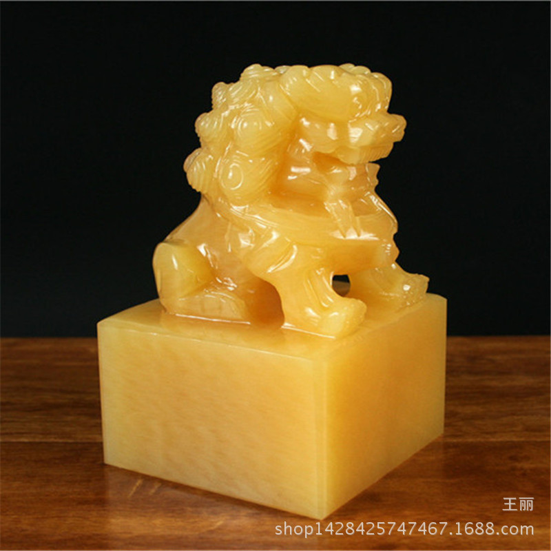 卸売りの米黄玉の獅子の印鑑は玉器の玉の獅子の玉璽の名前の書画の書道の蔵書の工芸品を並べます。