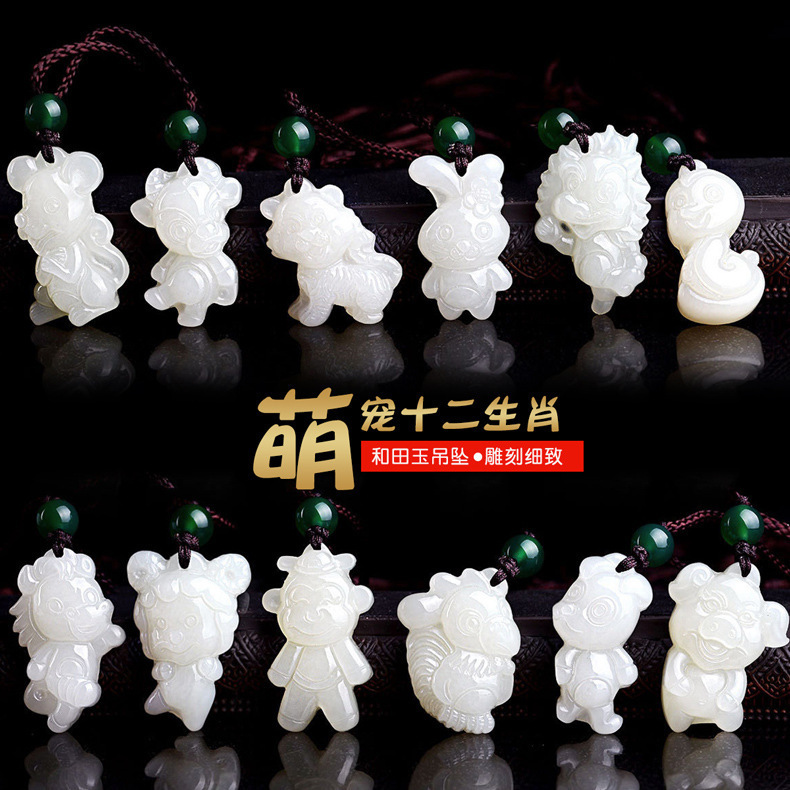 和田玉漫画の生肖の赤ちゃんの子供のペンダントの男女の萌宝の守護神の玉のペンダントの贈り物は証明書を持ちます。