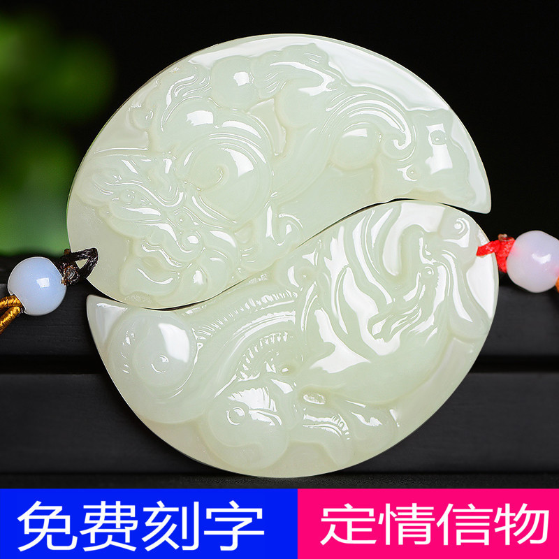 和田玉白玉龍鳳カップルの玉ペンダントと龍鳳と太極魚玉佩の男女の玉ペンダントのネックレス