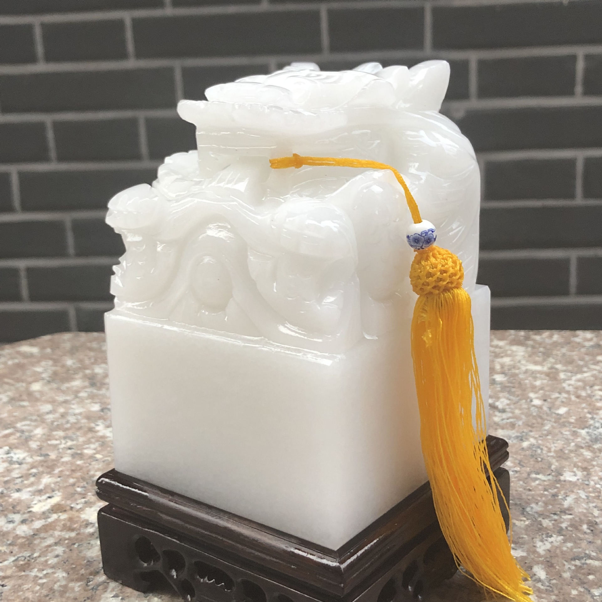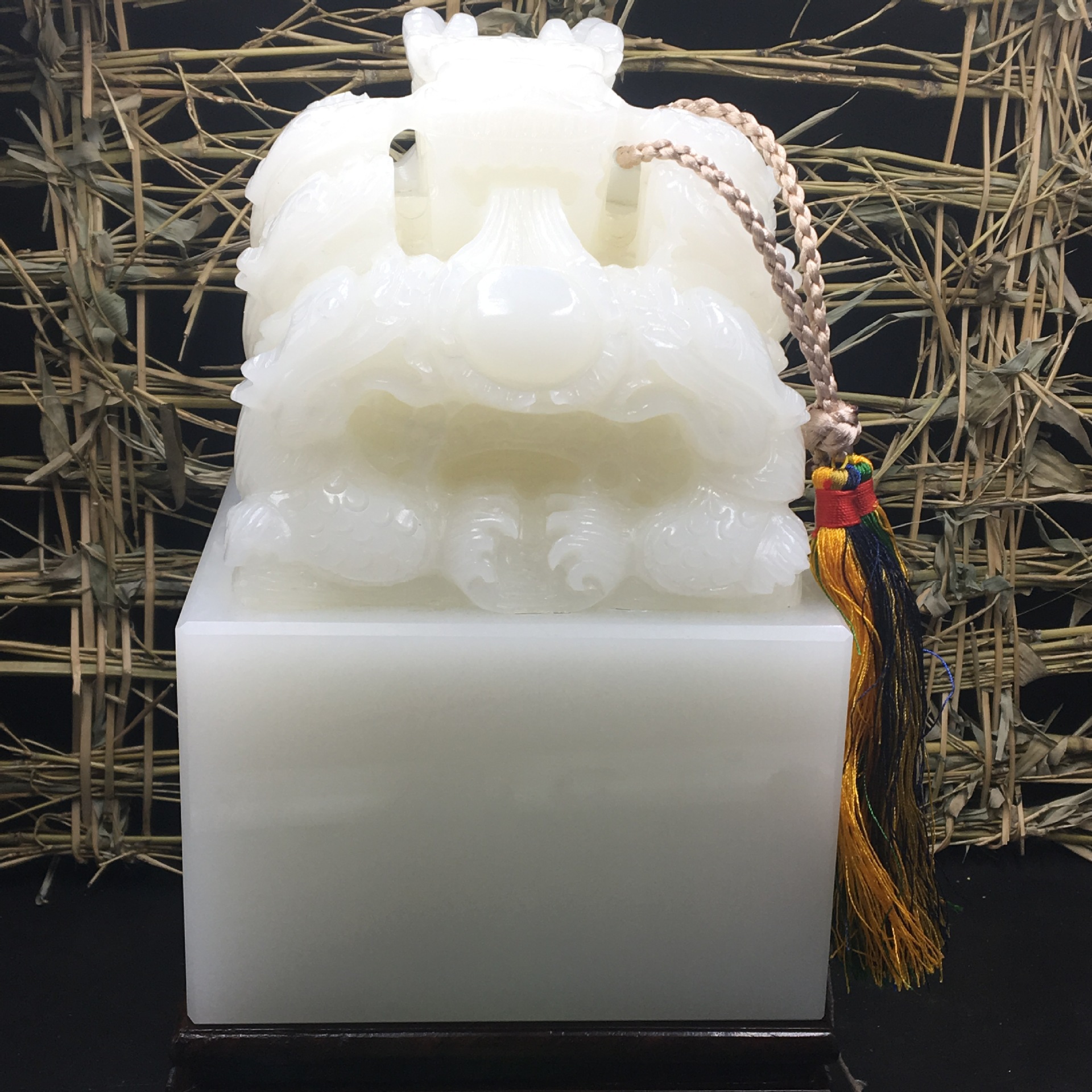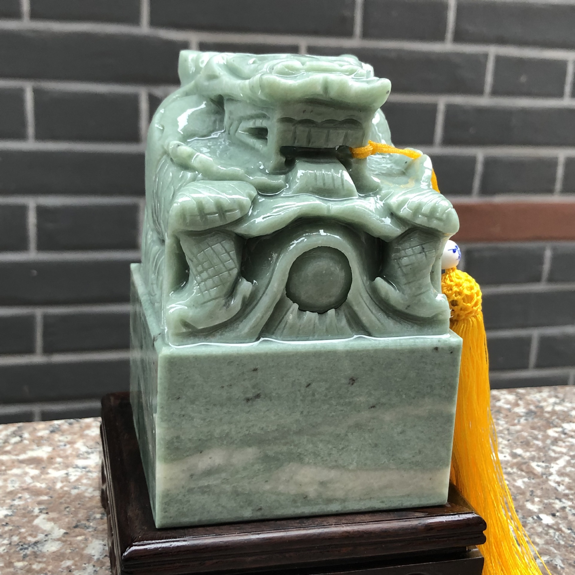 翡翠色玉龍頭印章置物盤龍玉璽白玉九龍置物ビジネスプレゼント