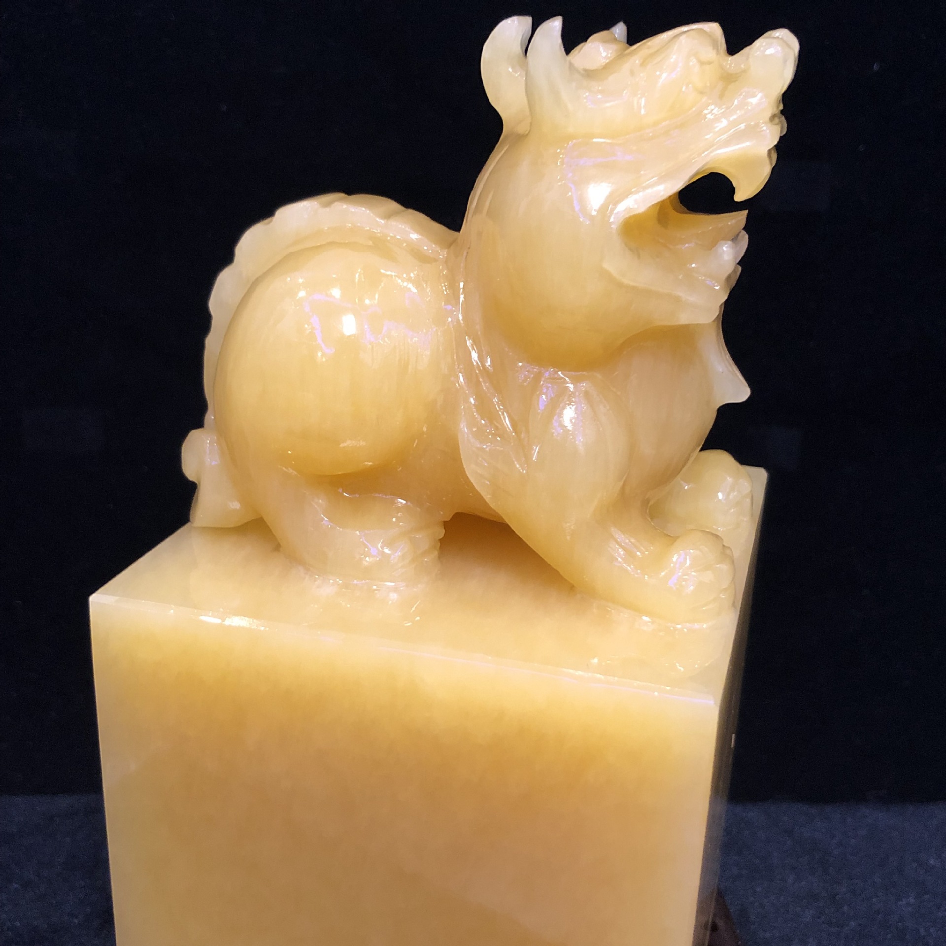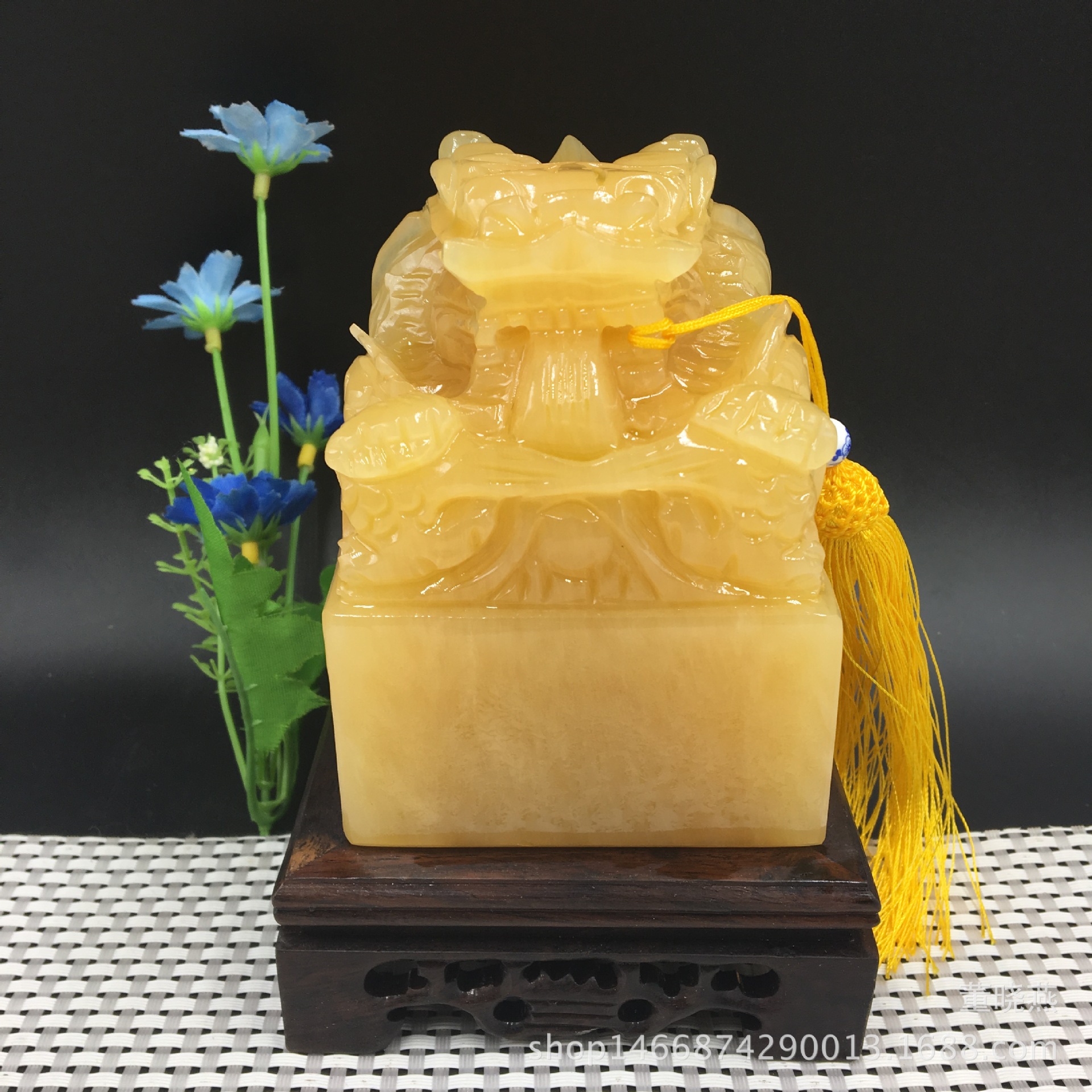 米黄玉ピシュピストの印鑑玉獣ピシュピスト玉璽の置物玉璽黄龍玉の印鑑の贈り物
