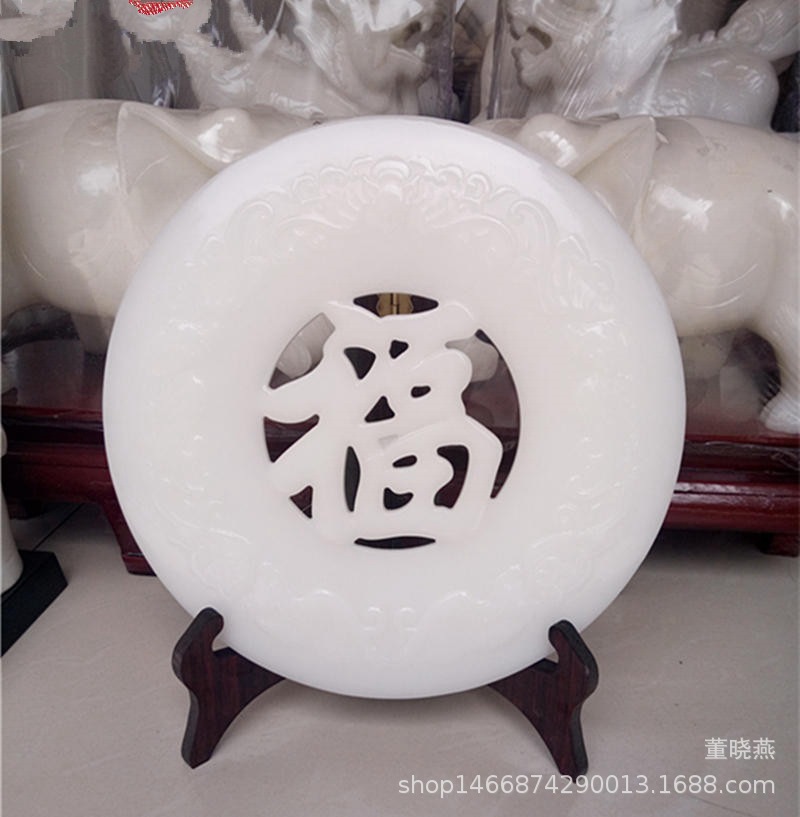 アフガニスタンの白玉の福の字の置物の平安は吉祥の玉盤の家庭の客間の装飾の置物の引っ越しの贈り物の卸売りを掛けます。