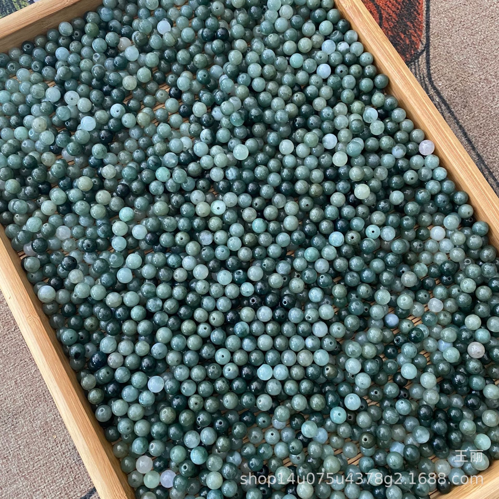 天然翡翠A品円珠散珠ビルマ玉油青珠手串ネックレス仏珠配珠尾品処理