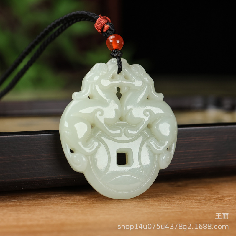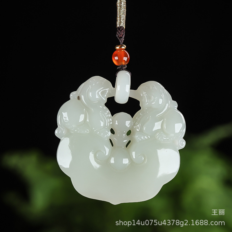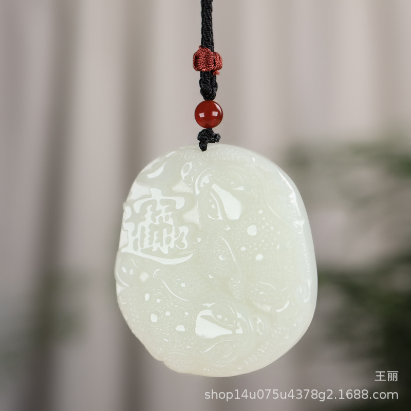 天然和田玉吉祥如意牌首飾りペンダント新疆白玉男女ストラッププレゼントペンダント