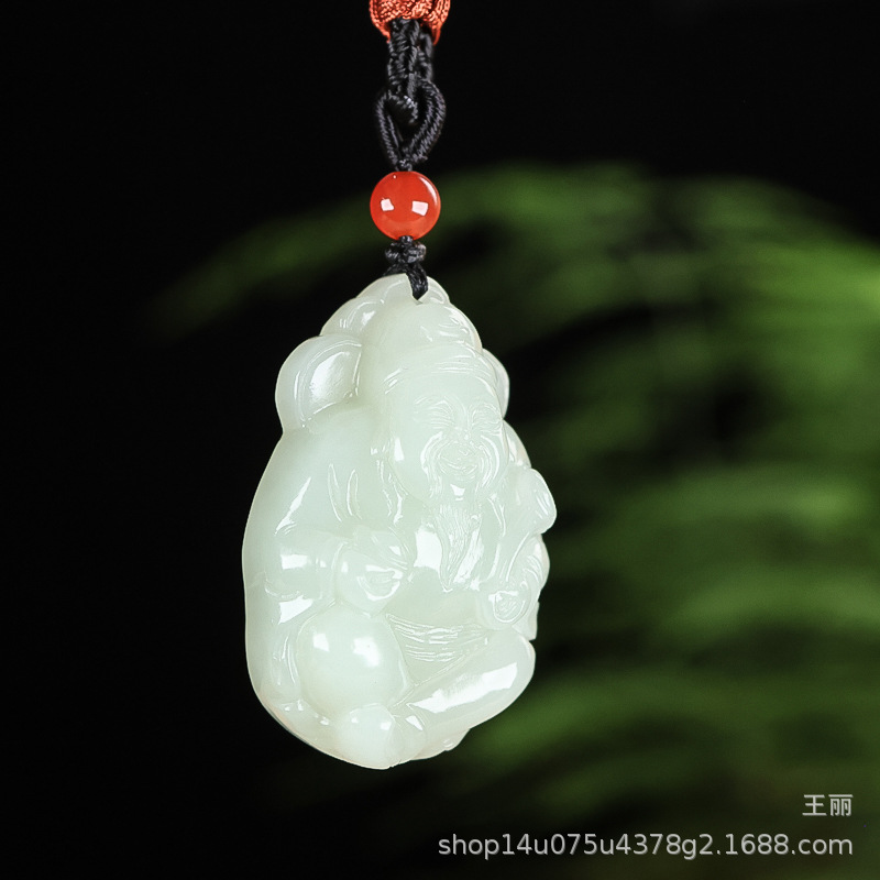天然新疆和田玉財神爺ペンダント青白玉ペンダント男女の玉ペンダントネックレス玉佩