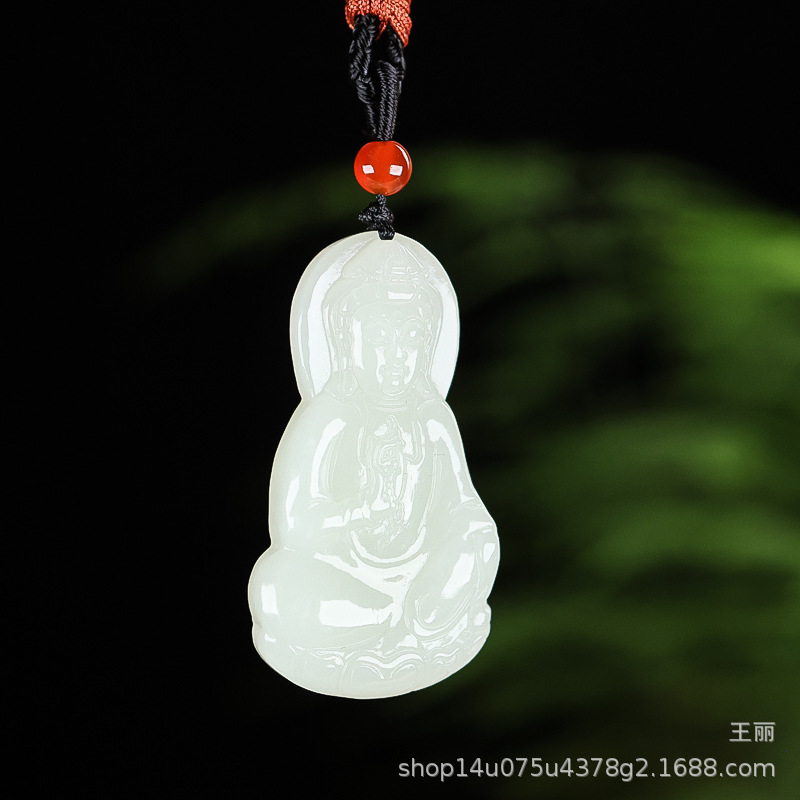 天然和田玉観音ペンダント新疆青白玉ペンダント生肖本命仏男女玉佩ネックレス