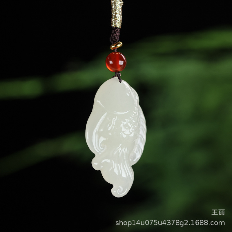 天然和田玉小魚ペンダント新疆青海材料玉両面彫刻立体魚ペンダント浅青魚項目