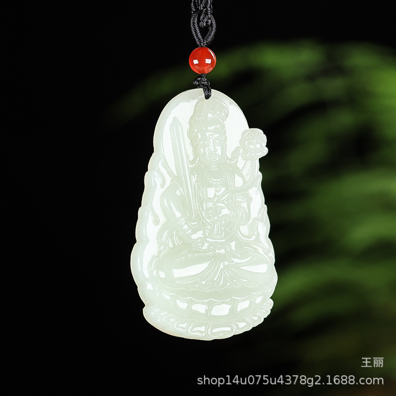 天然和田玉虚空蔵菩薩ペンダント男女新疆青白玉ペンダント生肖本命仏玉佩ネックレス