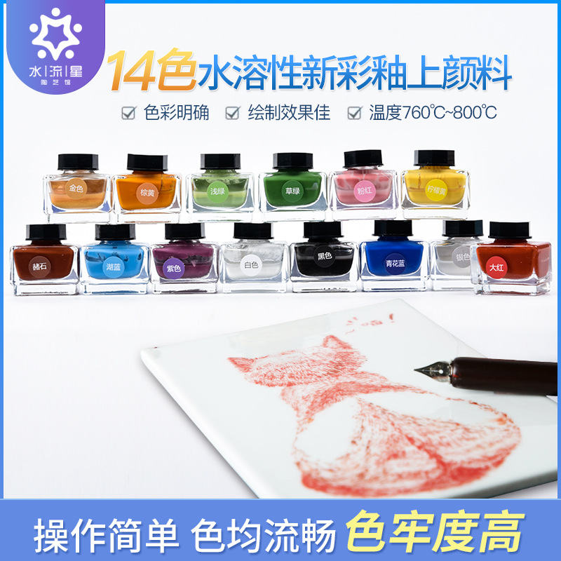 水流れ星陶芸顔料14色釉薬上彩水溶性新彩顔料彩色低温釉薬上セラミックス絵画料