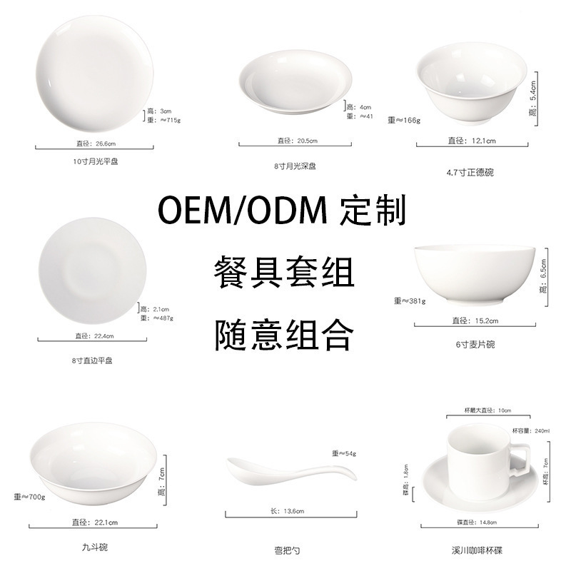 景徳鎮高白泥ホテルレストラン卸売り食器セット陶磁器カップ皿スプーン白磁単品純白タイヤ