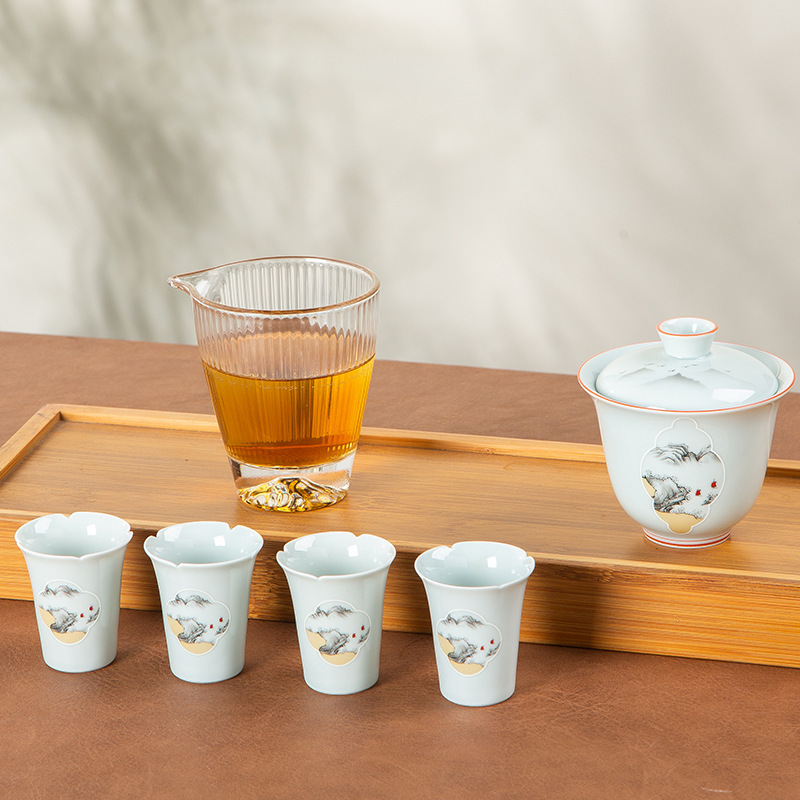 景徳鎮の陶磁器の茶器のセットは開業します。