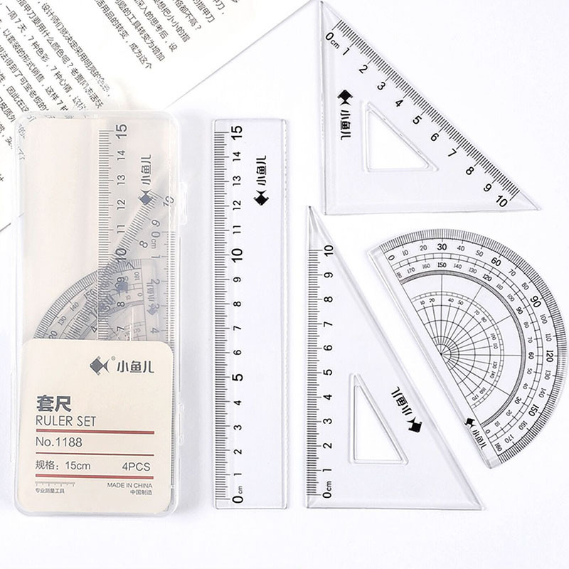 小魚1188無印風箱入り定規学生測定器直尺三角定規標準画図4点セット