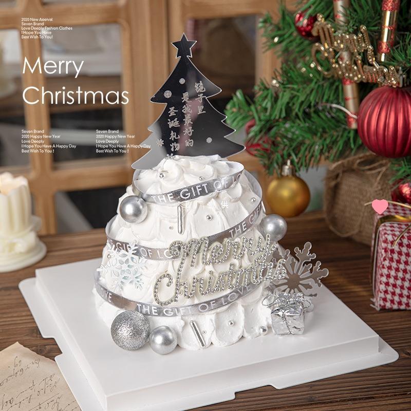 クリスマスケーキ装飾プラグイン雪鏡クリスマスツリー許木アンドロメダケーキシルバーリボン衣装