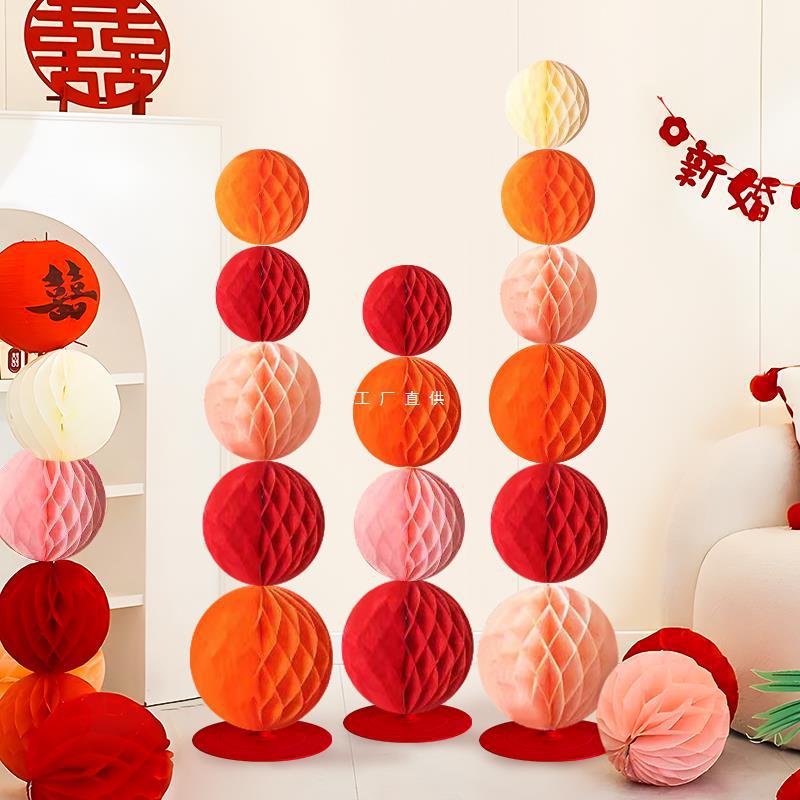 蜂の巣のボールの提灯の結婚する部屋の客間は結婚式の用品を飾ります。