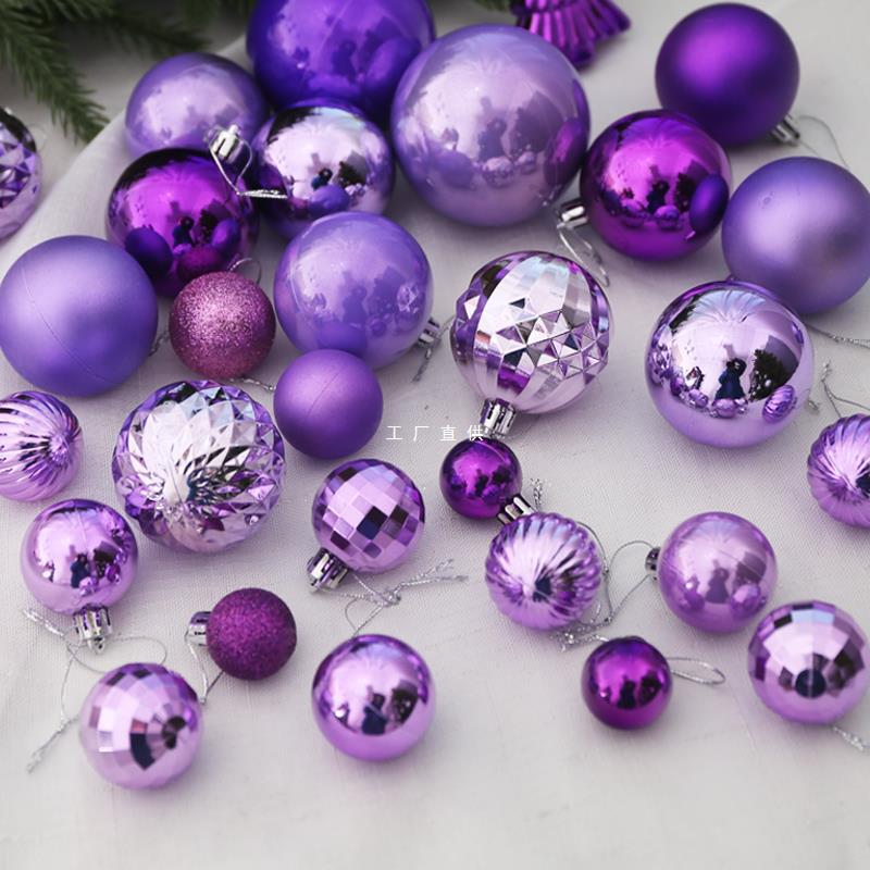 濃い紫色のクリスマスボールクリスマスツリー装飾ボール浅紫珠光8cm cmマルチボール礼箱ストラップ装飾品