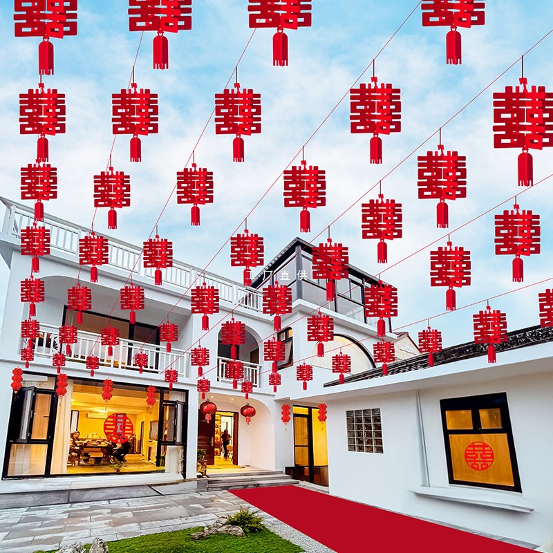 農村の結婚の庭は男性の庭の結婚の部屋を飾ります。
