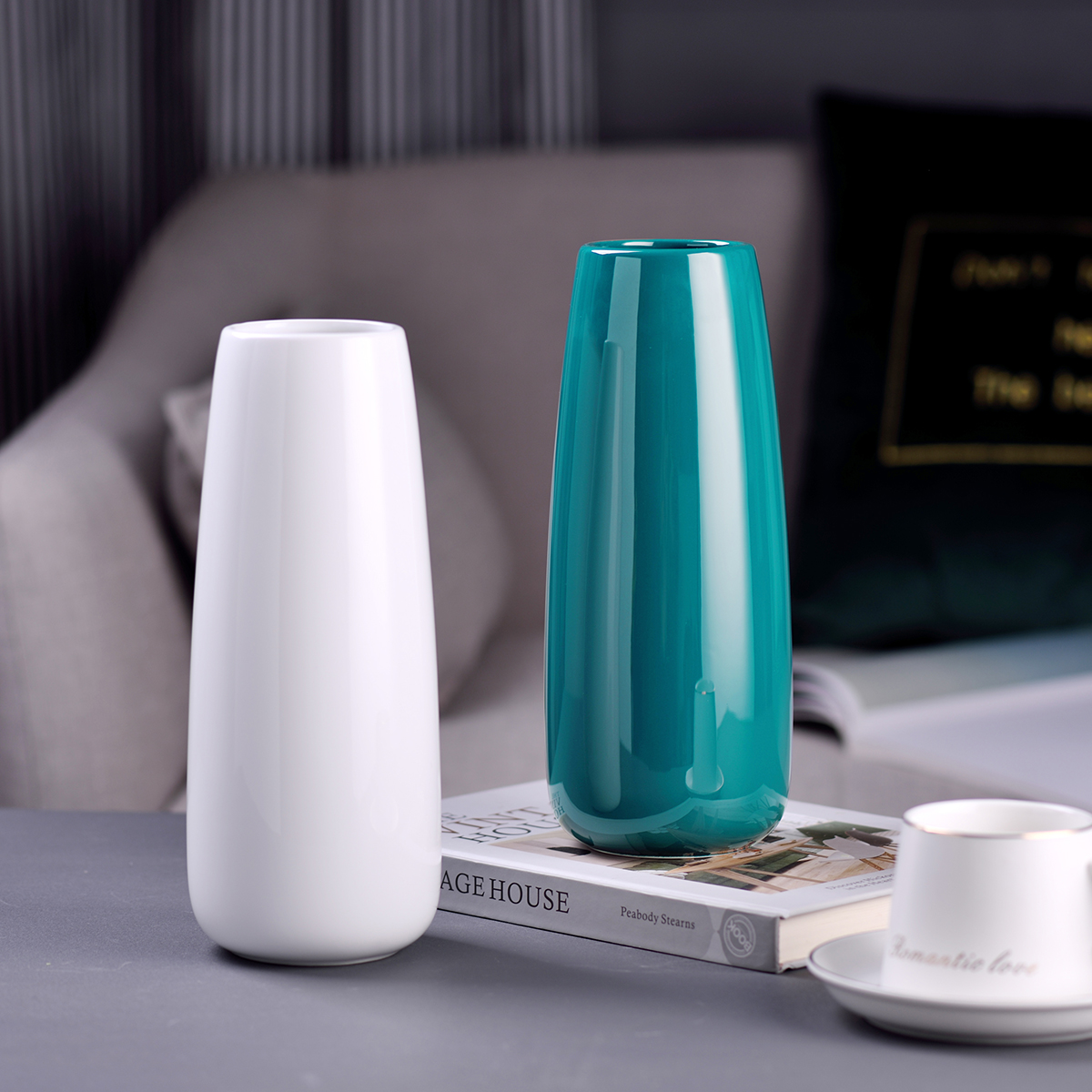 ヨーロッパのレトロなモダンな白と青のセラミック花瓶ホームデスクトップリビングルームテーブルフラワーアレンジメント水耕装飾品