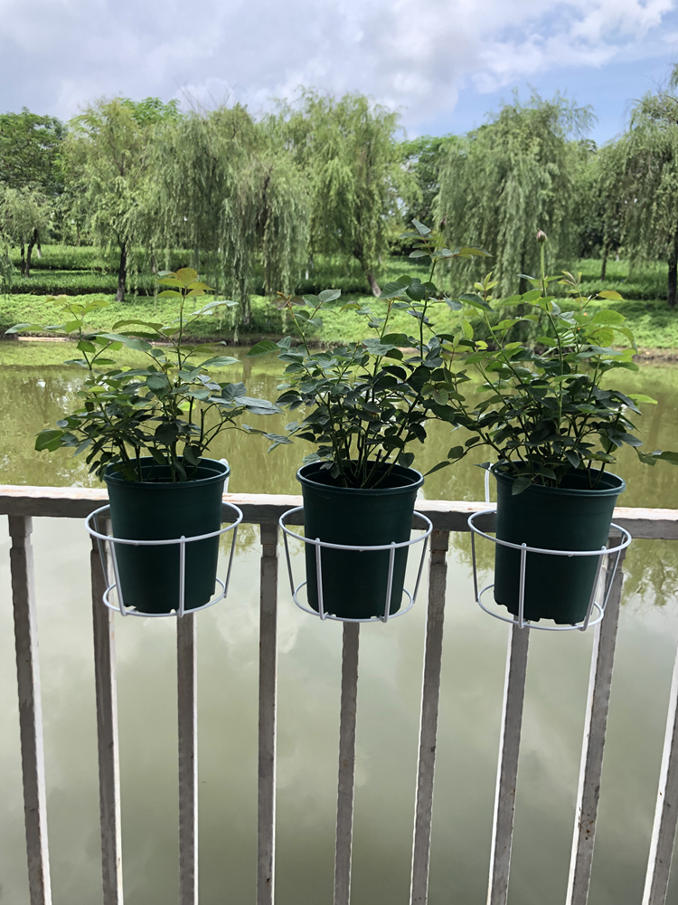 バルコニー手すりハンガー、丸型植木鉢鉄ラック、盗難防止ネット、壁掛けポットハンギングバスケット、フラワーバスケットハンギングアイアンフラワースタンド
