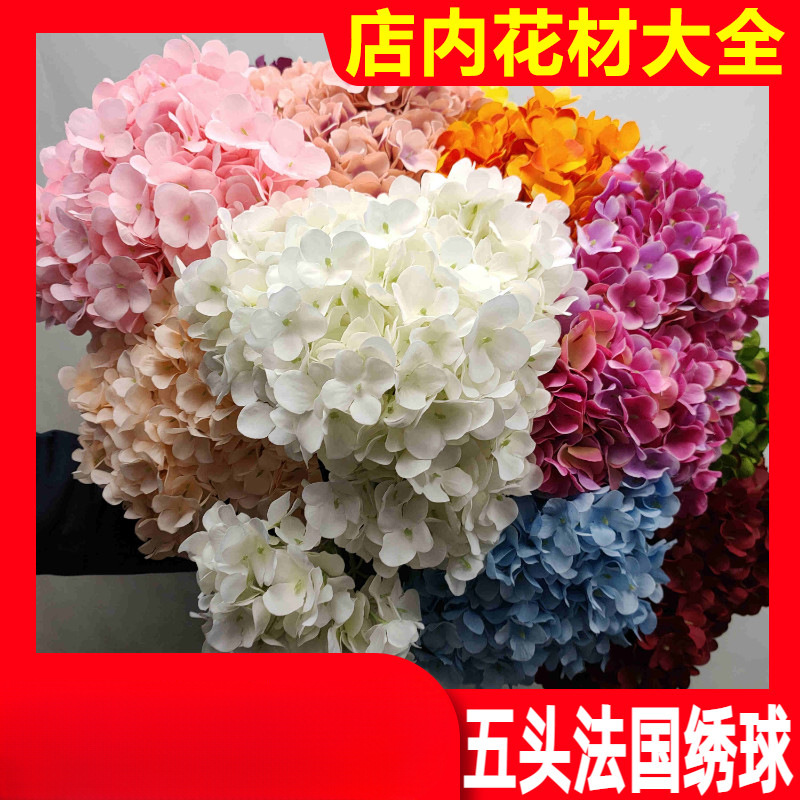 工場直販 5頭のフランスの大きなアジサイ ウェディングシーンの装飾 ウェディングフラワー フェイクフラワー