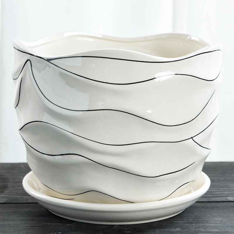 植木鉢セラミック特大トレイ付きプラスチックポトスオオバコ家庭用シンプルな白い多肉植物植木鉢