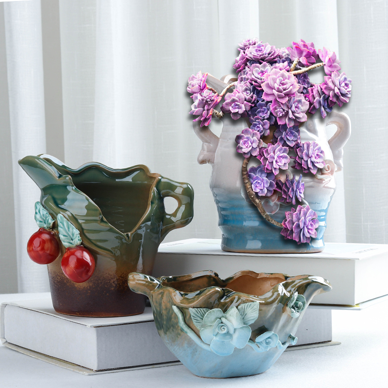 崖の杭多肉植物植木鉢セラミックノッチホール中大サイズパーソナライズされたクリエイティブリビングルームフラワーウェアヨーロピアンスタイルデスクトップ