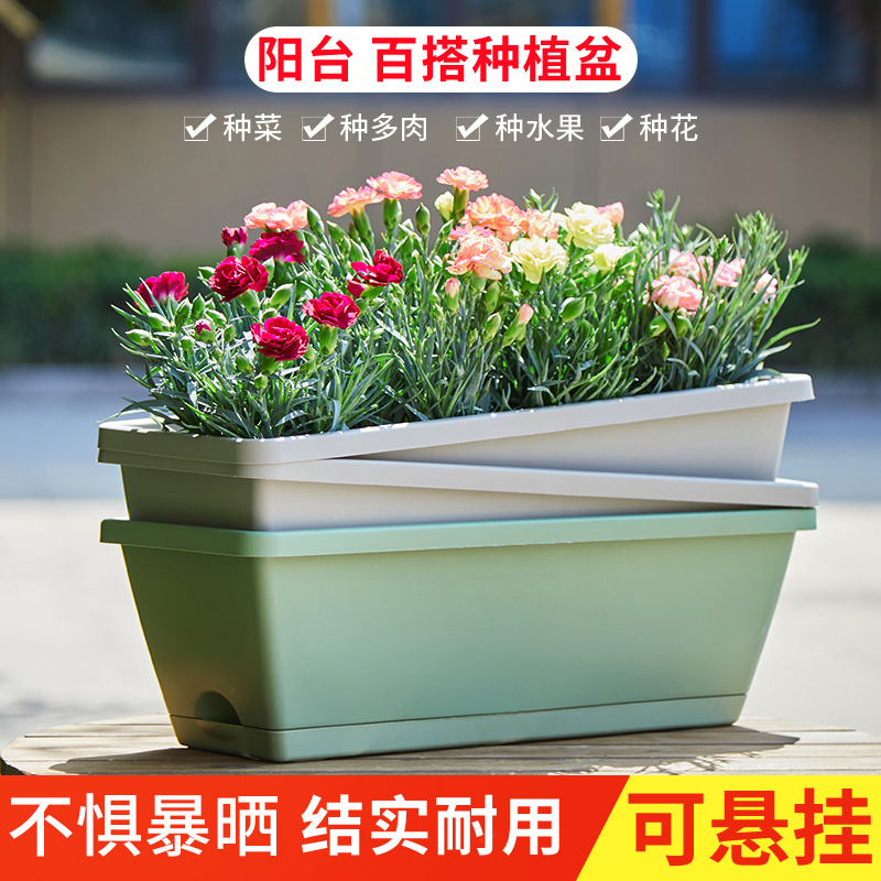 野菜ポット、バルコニー野菜ポット、長方形植木鉢、プラスチック製の長い植木鉢、家庭用野菜ポット、花の植え付け