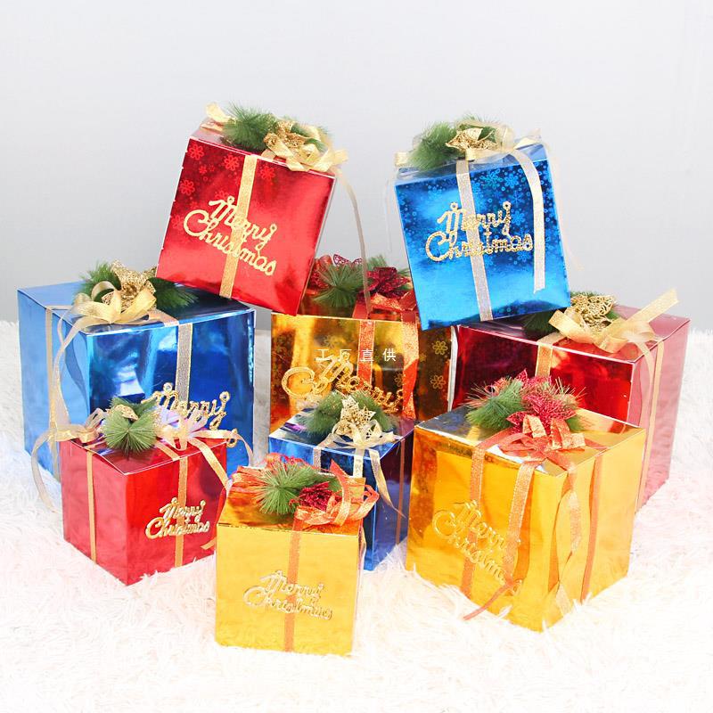 クリスマス装飾品レーザー紙ギフトボックスクリスマスツリーのシーンは、ショーウインドーを配置して箱を飾る