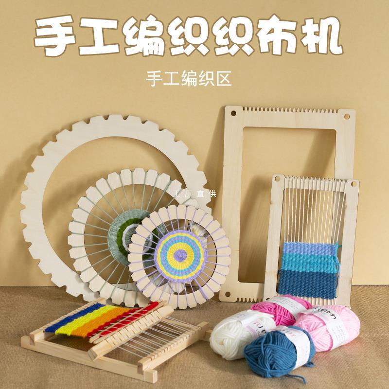 幼稚園の大クラスは美工区の材料を編んで手作りの毛糸板を包んで子供区の角の課程のdiyおもちゃを作ります。